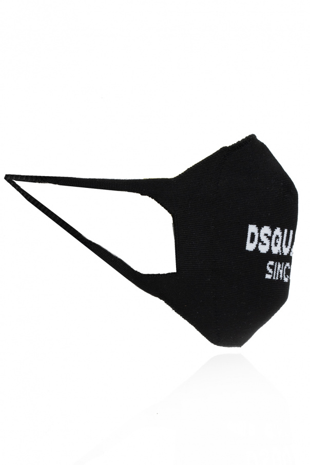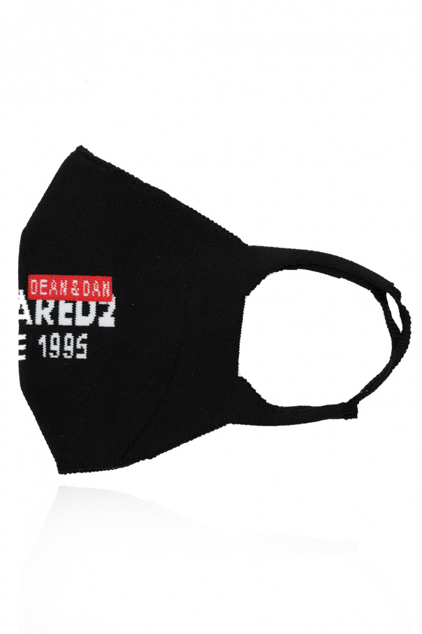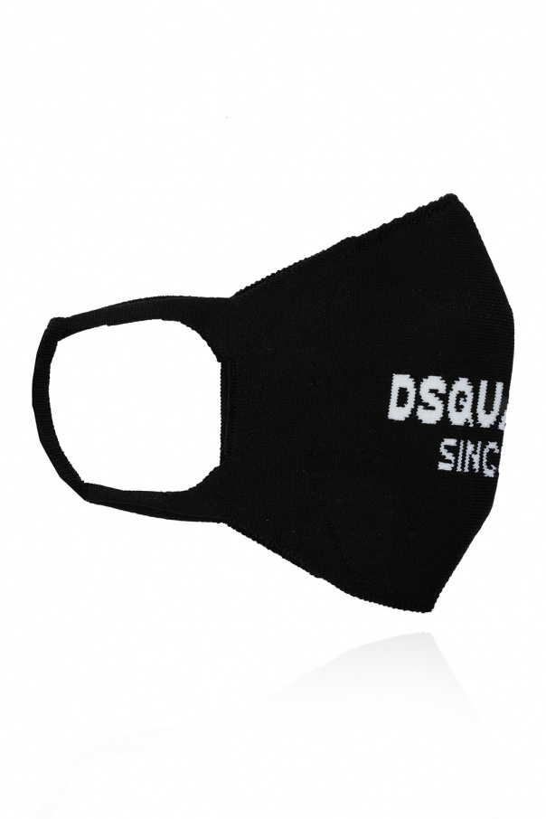 Black face mask from Dsquared2. Made from a cotton blend, this item showcases an embroidered white and red logo.