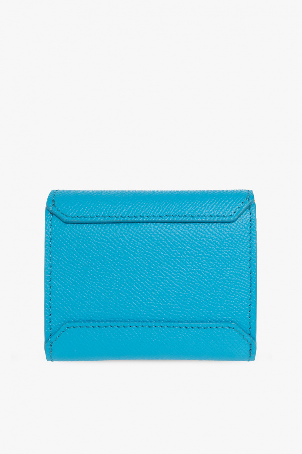 Blue ‘Buckle’ wallet from BOYY. Crafted from grained calf leather, this item features a magnetic snap, decorative logo-embossed buckle, detachable shoulder chain, gold-tone metal hardware and one internal compartment with suede lining.