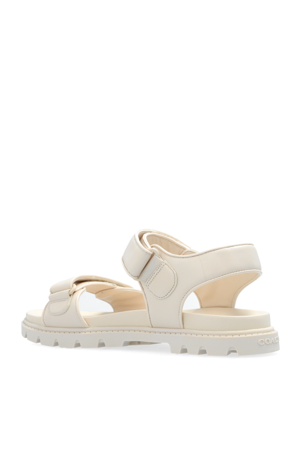 Introducing the Brynn Sandals by Coach, a testament to minimalist elegance and comfort. Crafted with a keen eye for detail, these sandals feature a creamy hue that exudes a serene sophistication. The outer layer, a harmonious blend of smooth leather and high-quality synthetic material, offers both durability and a luxurious feel. The innovative design includes a broad front strap that gently embraces the toes, complemented by an adjustable ankle strap secured with a buckle showcasing the designer's logo. This not only adds a touch of exclusivity but also ensures a perfect fit for unwavering support throughout the day. The interior, lined with a soft material, promises all-day comfort, while the thick rubber sole, distinguished by its noticeable tread, guarantees excellent grip and stability. Unique details like the designer's logo on the buckle and the front strap, alongside the branding on the insole, highlight the sandals' upscale origins and meticulous craftsmanship. Why Purchase the Brynn Sandals? Exemplary Comfort: Thick, treaded rubber sole ensures all-day wearability. Elegant Design: Creamy hue and minimalist style complement any outfit. Adjustable Fit: Secured with a velcro fastening for tailored comfort. Premium Material: Crafted from high-quality leather and synthetic materials. Exclusive Branding: Subtle yet distinguished logo placements signify luxury.