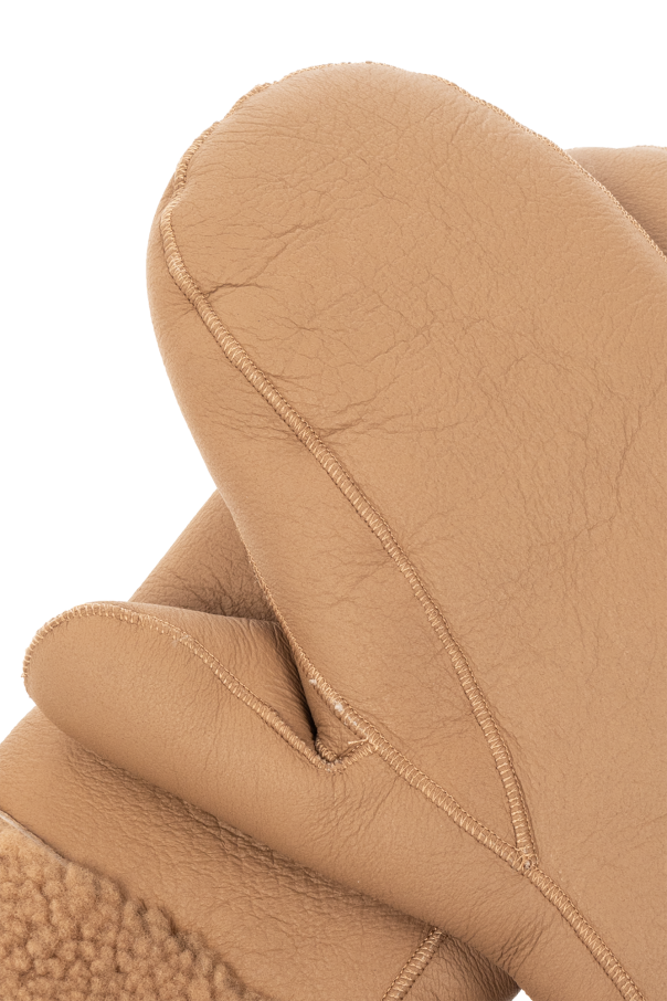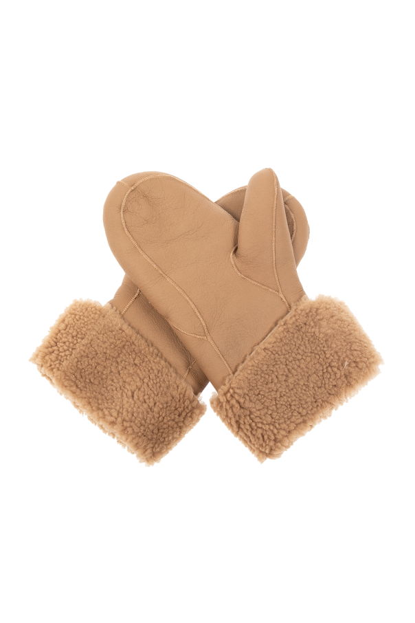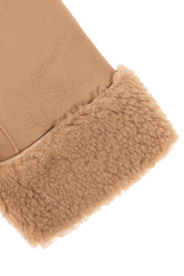 Brown gloves from Yves Salomon. Made of lamb leather and trimmed with fur.