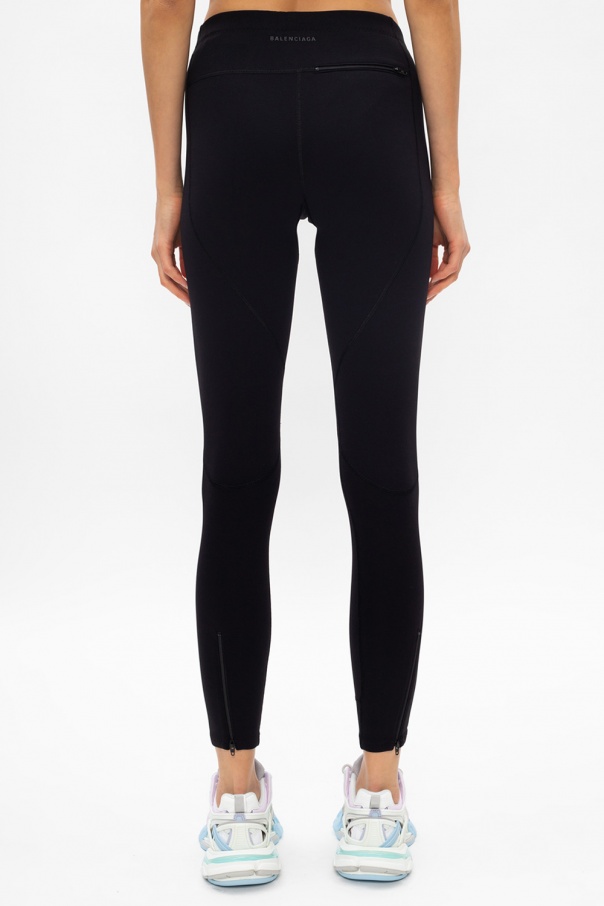 Black leggings from Balenciaga. This design is complete with an elastic waistband, a zip pocket and a logo print at the back as well as zipped cuffs.