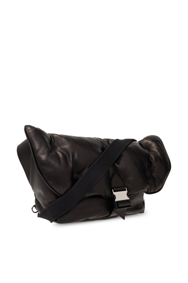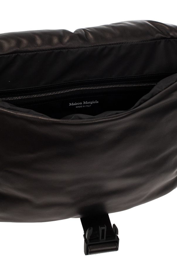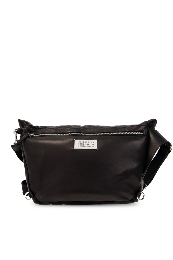 Black ‘Glam Slam’ belt bag from Maison Margiela. Crafted from sheep leather, this model features a buckle belt, the label’s signature quilting, white patch and zip pocket at the back, adjustable shoulder strap, silver-tone metal hardware and one internal compartment with one zip pocket. Can also be worn as a one-shoulder backpack.