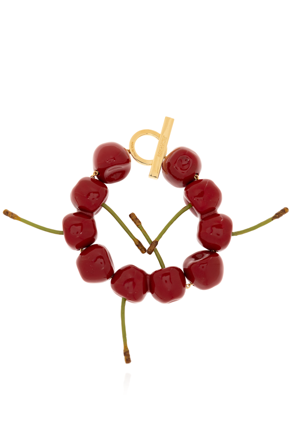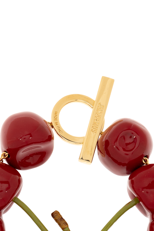 Red bracelet with a cherry motif from Jacquemus. Made of gold-tone brass, this design features a logo-engraved toggle closure.