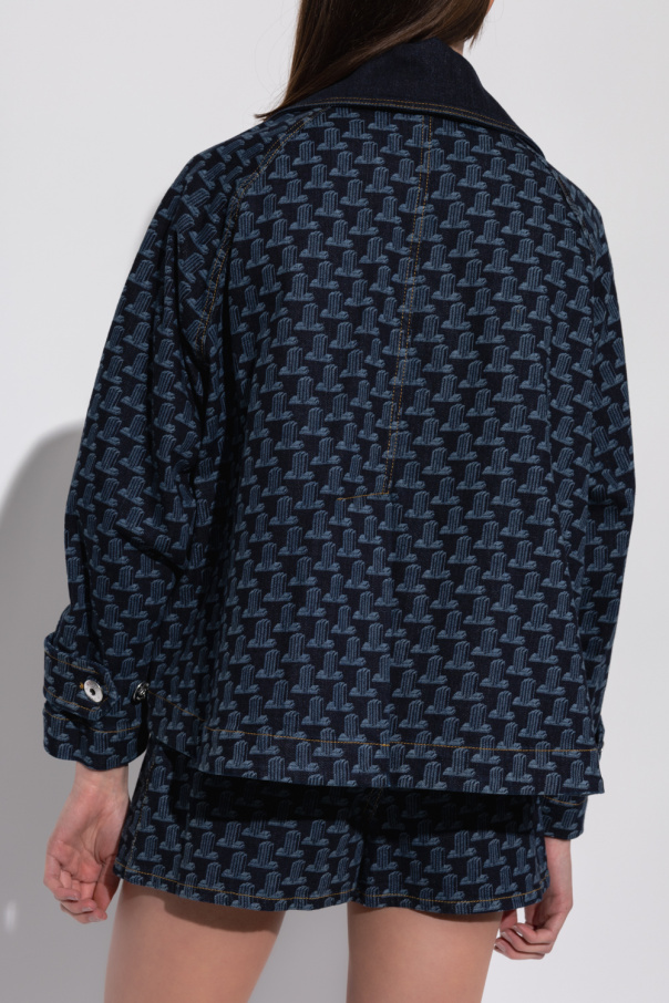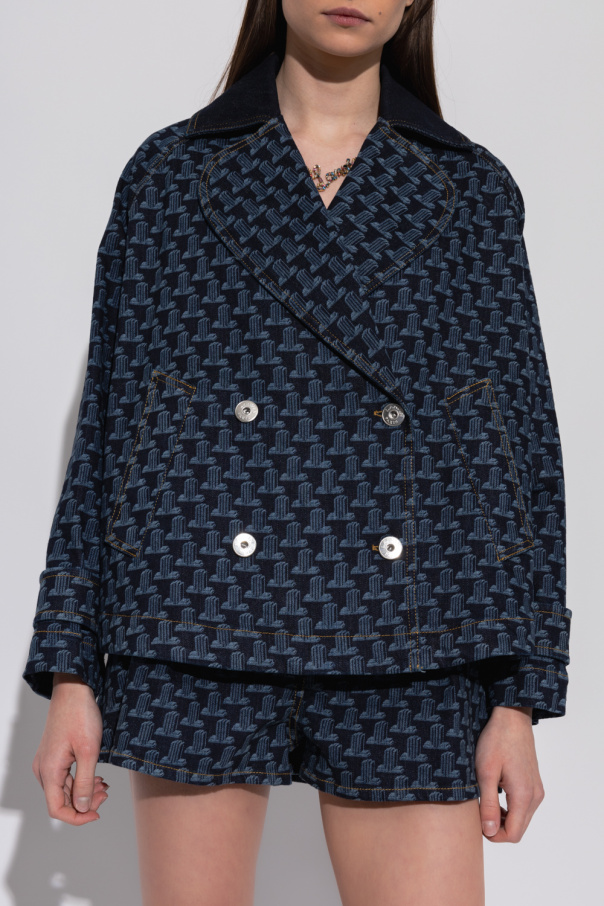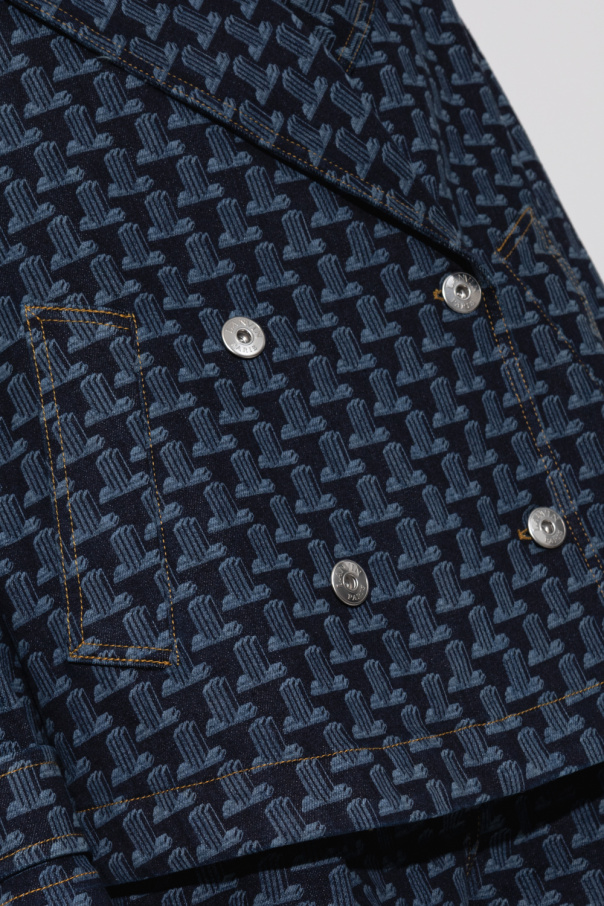 Navy blue denim jacket from Lanvin. Embellished with a laser ‘3D JL’ print, this style features a flared silhouette, button fastenings, notch lapels, two frontal pockets, a single back vent and long sleeves with button straps.