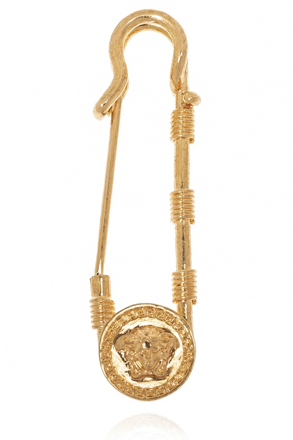 Gold-tone brooch with a Medusa head motif from Versace. Made of brass.