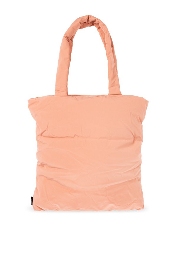 Pink ‘Ulriken’ quilted shopper bag from Holzweiler. Crafted from a fabric blend including recycled material, this design fastens with a zip and showcases a printed white logo on the front, two half-round handles and one internal compartment with one zip pocket and one velcro-fastened pocket.