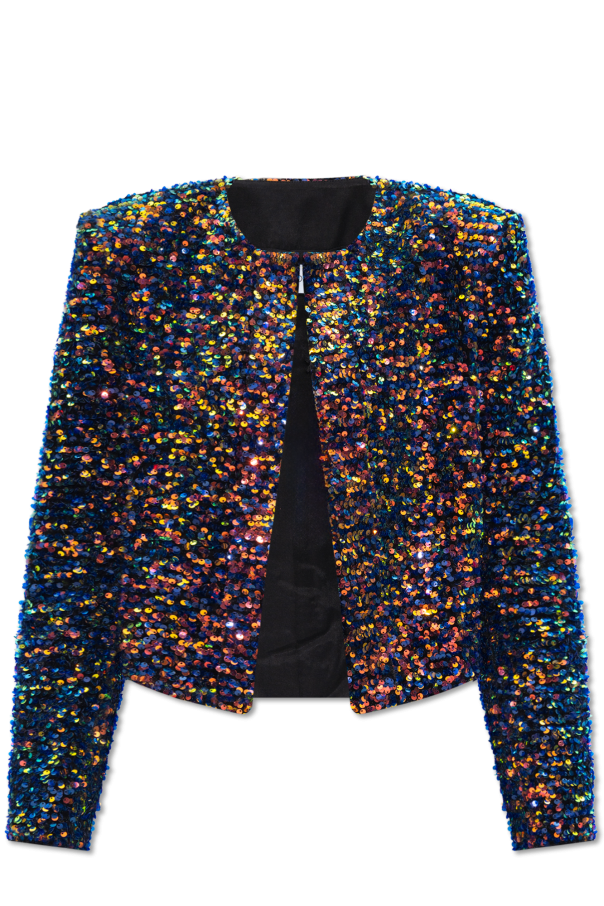 Multicoloured ‘Daphne’ jacket from Iro. Made of velvet material with all-over sequins, this cropped design features a round neck, padded shoulders and long sleeves.