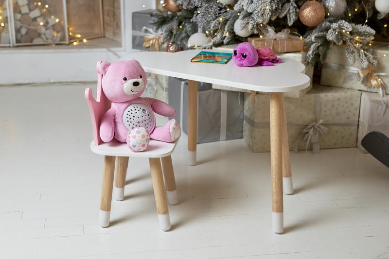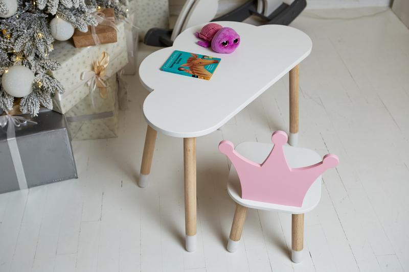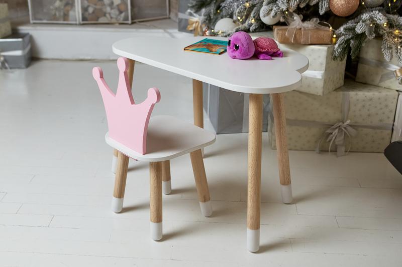Детский стол белый тучка и стул корона розовый. Детский белоснежный столик