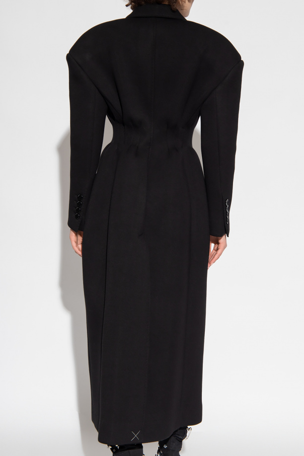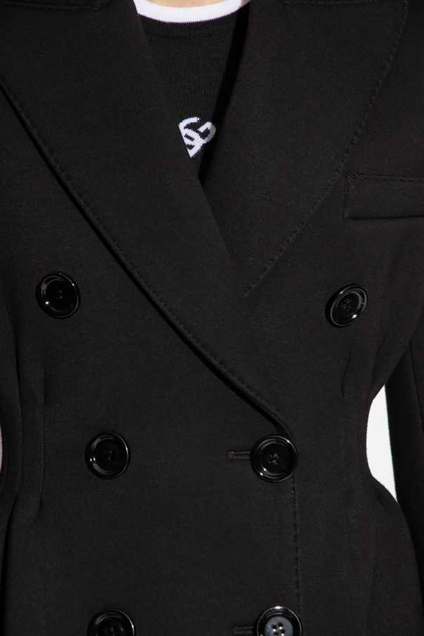 Black coat from Dolce & Gabbana. Crafted with a double-breasted silhouette, this style features button fastenings, peak lapels, three frontal pockets, long sleeves and a single back vent.