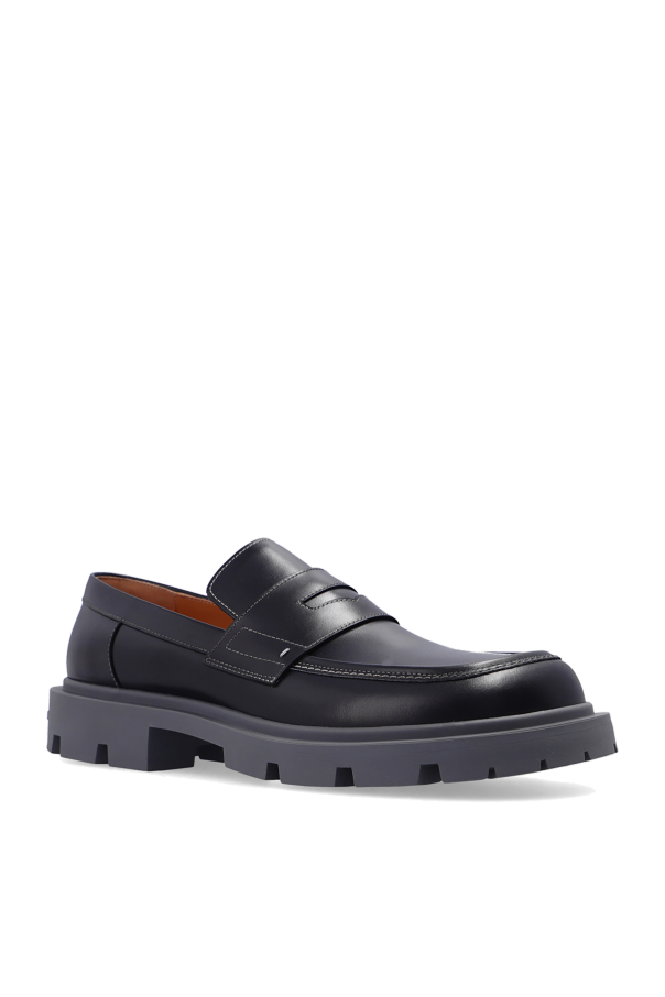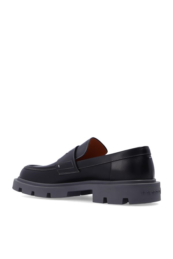 Black loafers from Maison Margiela. Made of leather, this model features distinctive grey stitching details, a tactile logo on the back, and a chunky sole in grey rubber.