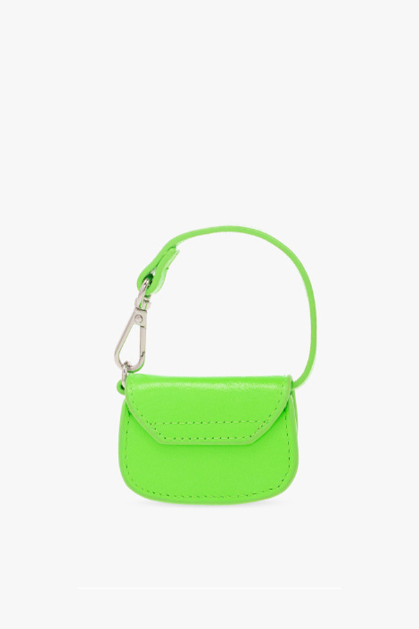 Neon green ‘1DR MICRO’ keyring with bag charm from Diesel. Made of leather, this item features a snap-fastened flap, logo detail, strap with a carabiner clip and one internal compartment.