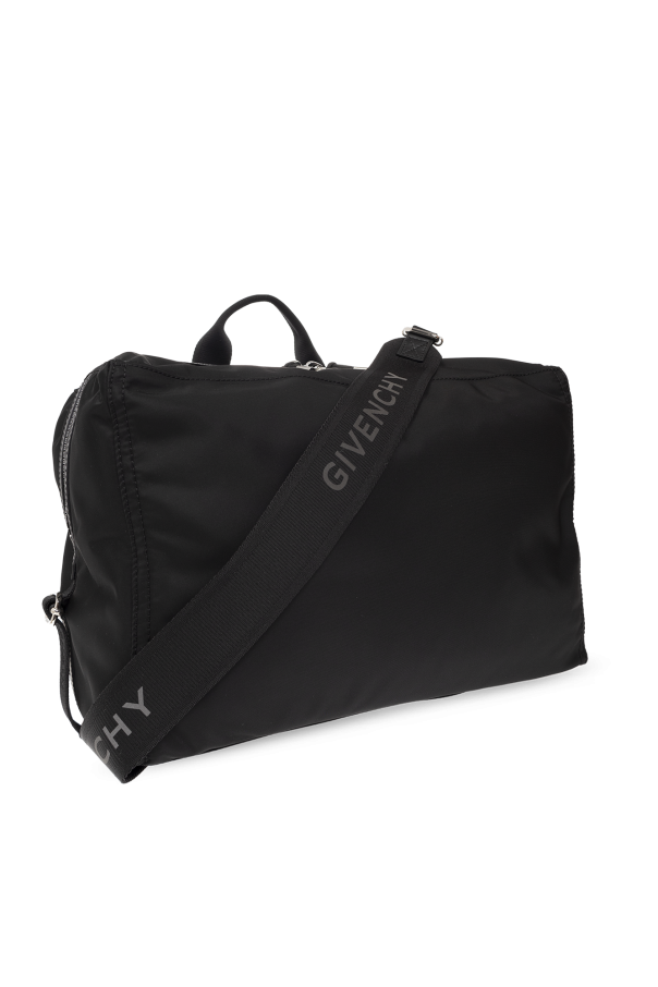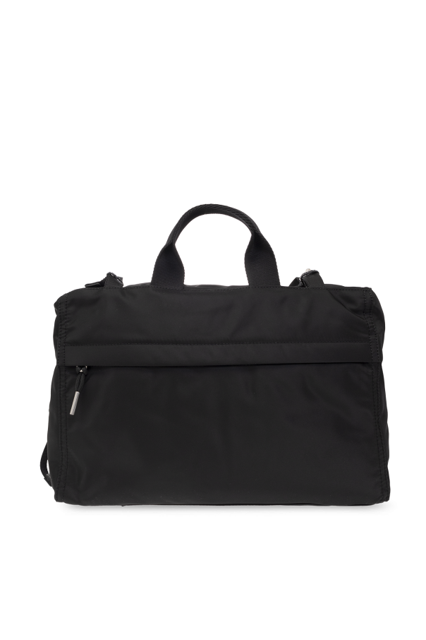 Black ‘Pandora Medium’ shoulder bag from Givenchy. Made from nylon, this model fastens with a zip and is decorated with a logo detail. It is complete with a half-round handle, zipped back pocket, adjustable shoulder strap with a reflective logo, silver-tone metal hardware and one internal compartment with one zip pocket.