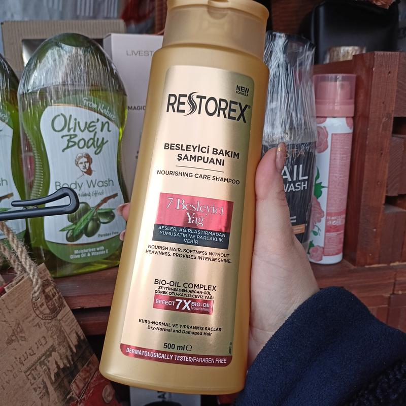 Формула шампуня Restorex содержит феноменальную смесь из масел абрикосовых косточек, миндаля, грецкого ореха, арганы, оливы, черного тмина и розы, которая творит настоящие чудеса с вашими локонами. Драгоценные масла полноценно ухаживают и нежно заботятся при каждом мытье головы, позволяя вам достичь шелковистых, сияющих и здоровых волос в короткие сроки. Продукт укрепляет, восстанавливает и глубоко питает ваши волосы от корней до самовыдних кончиков, при этом не утяжеляя их. Дарит потрясающий блеск, а также ощущение легкости и шелковистой мягкости. ЦЕННЫЕ ОЛИИ В СКЛАДИ: Миндальное масло: смягчает волосы, делает их гладкими, питает, восстанавливает, защищает от ломкости. Масло грецкого ореха: благодаря содержанию жирных кислот заботится о коже головы. Масло арганы: увлажняет кожу головы, помогает восстановить поврежденные волосяные фолликулы, укрепляет волосы. Масло оливы: обеспечивает интенсивное увлажнение и восстанавливает секущиеся кончики. Масло черного тмина: поддерживает здоровье кожи головы и эффективно борется с перхотью. Розовое масло: придает локонам естественный здоровый блеск. Масло оливы: обеспечивает интенсивное увлажнение и восстанавливает секущиеся кончики. Масло черного тмина: поддерживает здоровье кожи головы и эффективно борется с перхотью. Розовое масло: придает локонам естественный здоровый блеск. Масло абрикосовых косточек: питает и увлажняет кожу головы, делает прядки эластичными, предотвращает ломкость и придает блеск. Шампунь подходит для всех типов волос. Дерматологически протестирован. Не содержит парабенов и вредных для здоровья веществ.