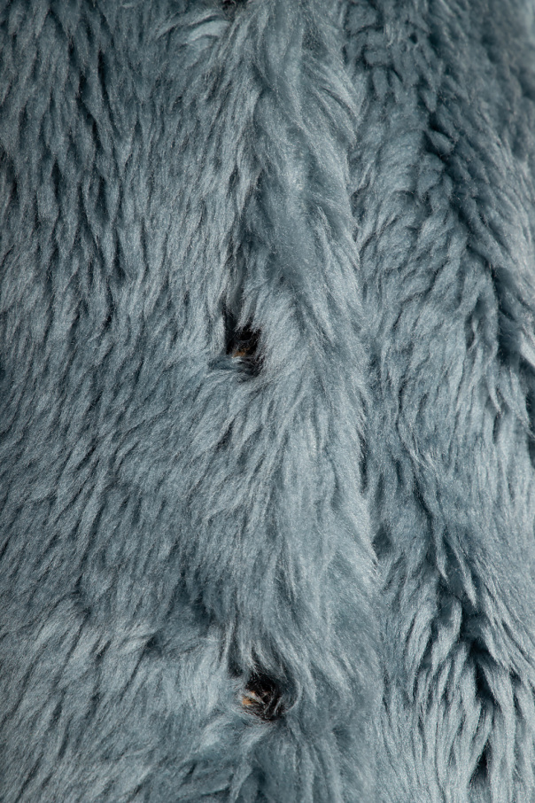 Bluish grey short faux fur coat from Yves Salomon, the ‘Meteo’ line. Made of wool, this garment features black buttons and two front pockets.