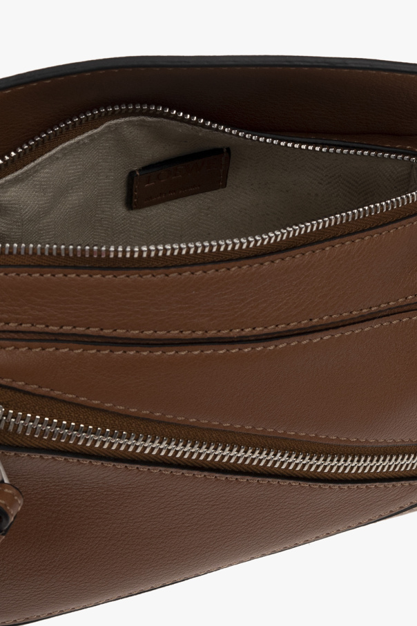 Brown ‘Puzzle Mini’ belt bag from Loewe. Crafted from calf leather, this design secures with a zipper and features an Anagram-embossed flap, asymmetrical patches, a zip front pocket, an adjustable shoulder strap with a snap, silver-tone metal hardware and one internal compartment.