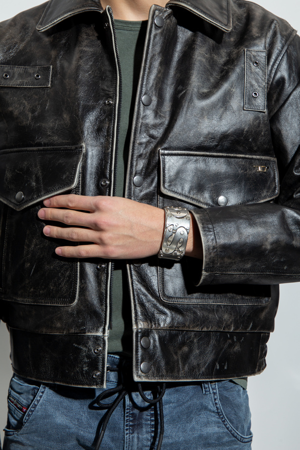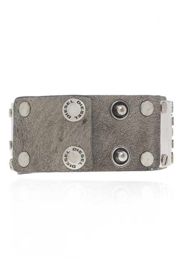 Grey and silver-tone ‘A-Rail’ bracelet from Diesel. Made of cow leather, this item features a double snap closure and distinctive metal elements.