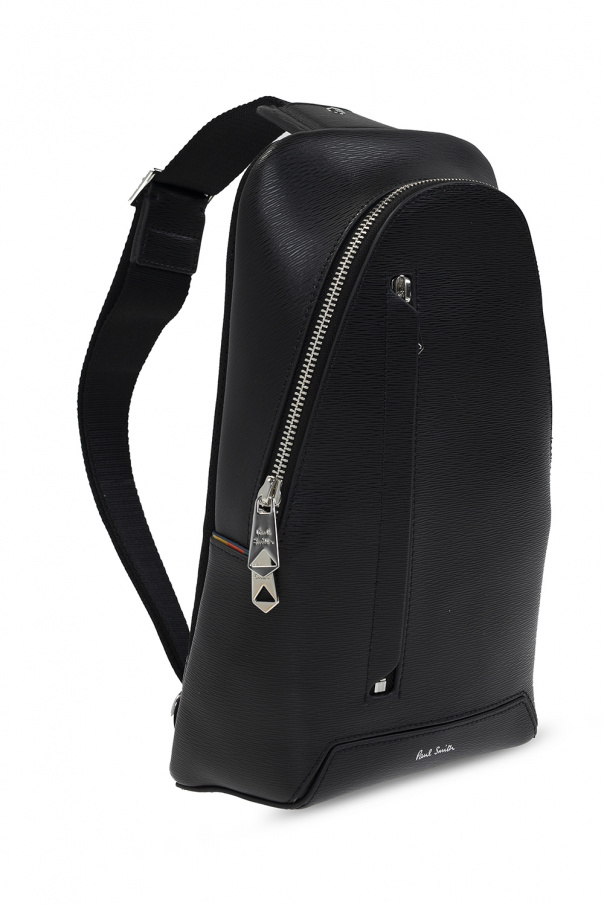 Black one-shoulder backpack from Paul Smith. Crafted from cow leather and cow leather, this design fastens via a zip and showcases an external zip pocket accompanied by a silver-tone logo print on the front, an adjustable strap and one internal compartment with a slip pocket.