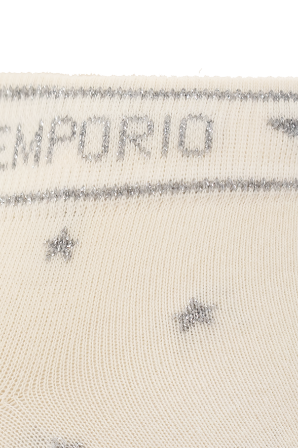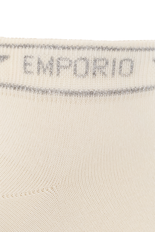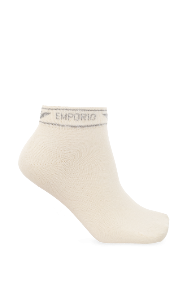 Cream socks two-pack from Emporio Armani. Made of cotton, each pair features shiny thread detailing and ribbed cuffs.