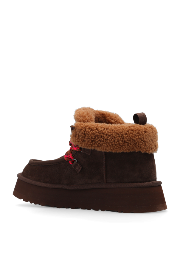 Dark brown ‘Funkarra’ ankle boots from UGG. Made from leather, this lace-up model sits on a rubber sole and showcases an embossed logo.