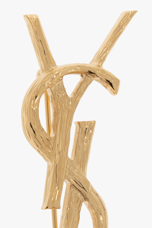 Logo-shaped brooch from Saint Laurent. Made of brass in gold-tone.