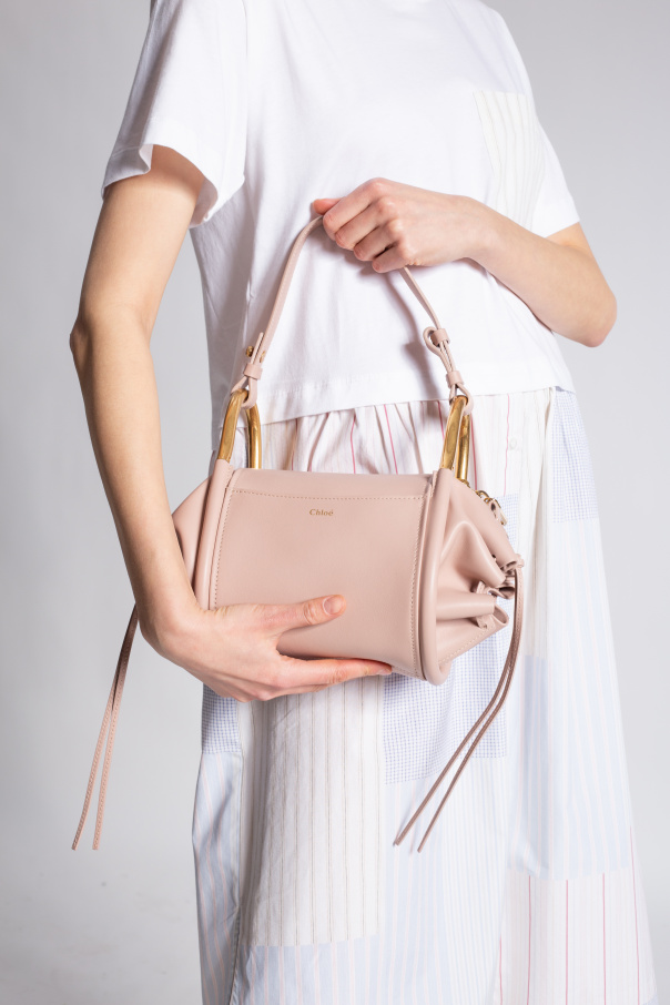 Pink ‘Hailey’ hand bag from See By Chloé. Size small. Crafted from calf leather, this model features a zip fastening, front pocket embossed with a gold-tone logo, decorative cords on the sides, three half-round handles – two metal and one detachable in leather, gold-tone metal hardware and one internal compartment with one slip pocket.