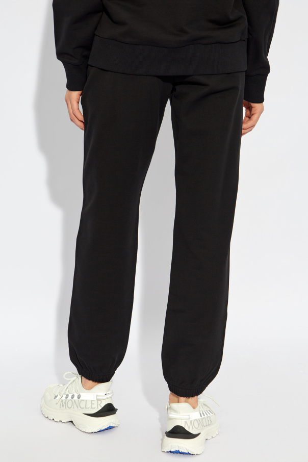Introducing the epitome of luxury athleisure, the Moncler Black Jogging Trousers. Crafted from the finest 100% cotton fabric, these trousers offer an unparalleled smooth and uniform texture that speaks volumes of their high-quality craftsmanship, typical of Moncler's exclusive clothing collections. The sophisticated black hue enhances their versatile appeal, making them a quintessential addition to any discerning wardrobe. Designed with both style and comfort in mind, these jogging trousers feature an elastic waistband with adjustable drawstrings, ensuring a perfect fit tailored to your silhouette. The leg tapers elegantly towards the ankle, finished with elastic cuffs that add a modern, sporty touch. An essential detail that sets these trousers apart is the discreet yet distinctive round logo patch on the upper part of the left leg. This patch, adorned with the iconic Moncler symbol and brand name against a contrastingly colored background, instantly identifies the piece as a mark of luxury and exclusivity. Why Purchase This Product? Exquisite 100% cotton material offers both comfort and durability. Elegant design details such as the tapered legs and elastic cuffs, marrying style with practicality. The iconic Moncler logo serves as a hallmark of quality and luxury. Adjustable waistband ensures a customizable and flattering fit. Versatile black color complements any outfit, enhancing your wardrobe with a touch of sophistication.