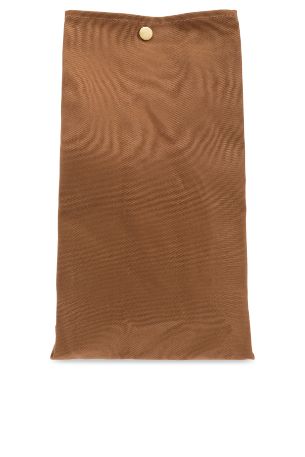 Introducing the epitome of sophistication and functionality - the Carhartt WIP Lunch Bag. Crafted from durable, high-quality cotton, this exquisite brown lunch bag stands out with its distinctive, textured material that promises longevity and resilience. Its rectangular, vertically oriented shape with rounded corners at the bottom adds a touch of three-dimensionality, making it not only practical but also aesthetically pleasing. The bag features a single, gold clasp closure at the top, ensuring your belongings are secure yet easily accessible. The interior, matching the bag’s exterior in its rich brown hue, is spacious and undivided, highlighting the bag's emphasis on simplicity and functionality. Lightweight and easy to carry, it is an ideal choice for both daily use and special occasions. Adorned with a small, rectangular designer patch featuring Carhartt WIP’s iconic logo, this lunch bag becomes instantly recognizable and a statement of high fashion. The combination of the logo's white background with orange-black graphic marks and the brand name adds an exclusive touch to this everyday essential. Why Choose This Product? Made from 100% high-grade cotton, ensuring durability and sustainability. Elegant design with a unique shape and texture, making it a stylish accessory. Features a secure gold clasp closure for easy access and safety of contents. Embellished with the renowned Carhartt WIP logo, offering an element of exclusivity. Lightweight and practical, perfect for daily use.