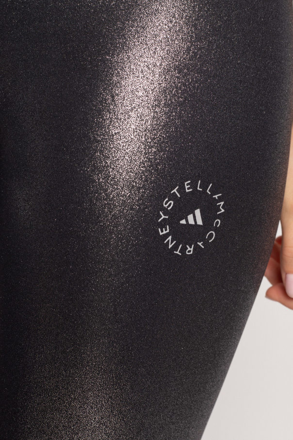 Silver-tone leggings from ADIDAS by Stella McCartney, the ‘Primegreen’ line. Crafted from moisture-absorbing AEROREADY fabric spruced up with glitter, this pair showcases an elasticated waistband and a white graphic logo print. The Primegreen line uses recycled materials in the production of high-quality products.