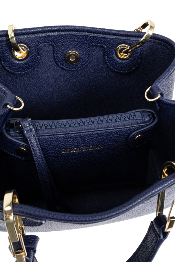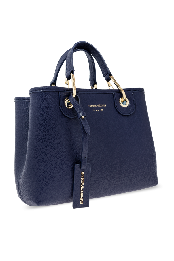 Introducing the "Borsa" Shopper Bag by Emporio Armani, a paragon of elegance and functionality. Crafted with a meticulous eye for detail, this exquisite piece is presented in a striking blue hue, encapsulating the essence of luxury. The bag's fine-grained texture exudes sophistication, while its classic rectangular silhouette with subtly rounded corners at the top showcases timeless design. The front of the bag is adorned with a silver designer logo accompanied by the inscription "MILANO 1981," signifying its prestigious origins and exclusive nature. Gold accents in the form of metal hardware and wheels add a touch of elegance and contrast, enhancing the bag's allure. Equipped with sturdy handles, the Borsa offers versatility in carrying options, either by hand or over the shoulder, thanks to an additional detachable strap allowing for crossbody wear. A hallmark of the brand, a pendant bearing the name "Emporio Armani," is affixed to one of the handles, elevating the product's distinctiveness and brand recognition. Inside, the bag reveals a capacious interior with multiple pockets for organized storage, including a zipped compartment, all harmoniously colored to match the exterior, ensuring aesthetic continuity. Secured with a magnetic closure, the Borsa boasts two main compartments, further enhancing its practicality. This shopper bag encapsulates the blend of style and utility sought after by discerning clients. Why Purchase This Product? Elegant design with fine-grained texture and gold metal accents. Exclusive branding details, including a designer logo and signature pendant. Versatile carrying options with sturdy handles and a detachable strap. Spacious interior with organized compartments for practical use. Luxurious and functional, perfect for those who value both style and practicality.