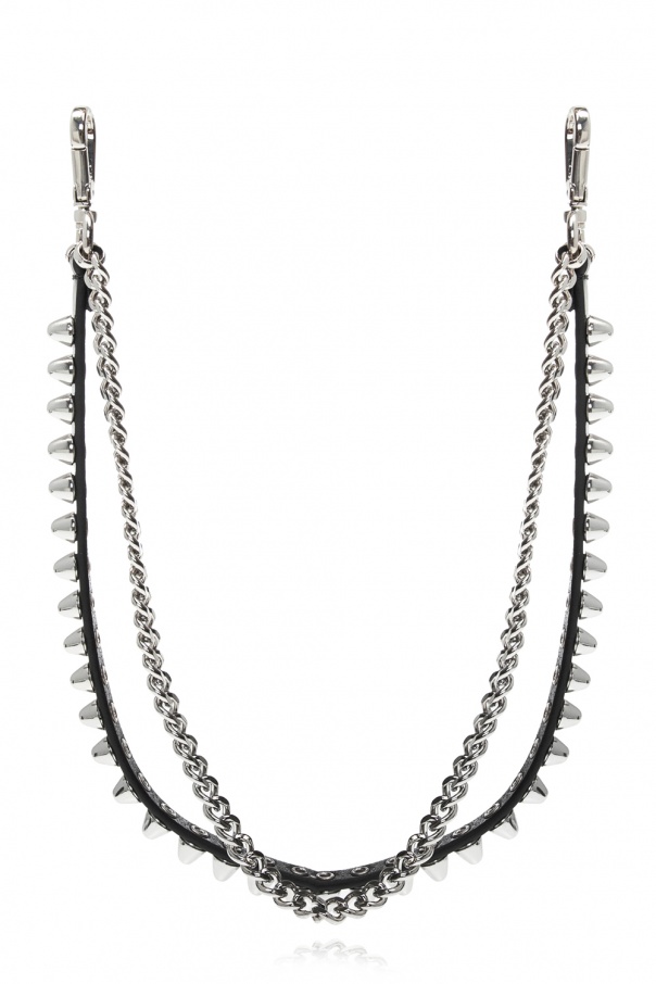 Black and silver-tone key ring with chain from Dsquared2 featuring snap hooks and decorative elements in silver-tone.