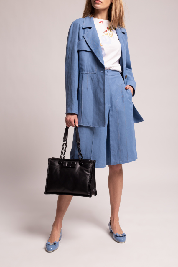 Blue ‘Vara’ pumps from Salvatore Ferragamo. Crafted from patent calf leather, this pair sits on a beige leather sole and features a silver-tone logo appliqué.