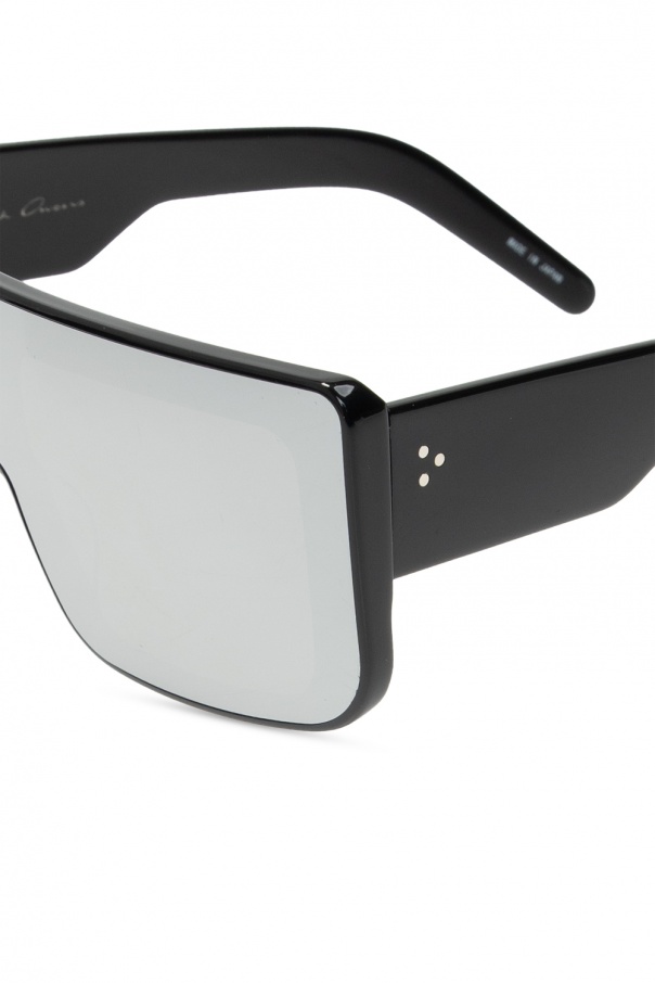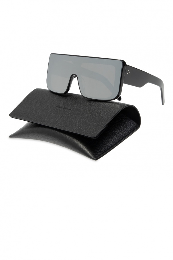 Black ‘Documenta’ sunglasses from Rick Owens. Crafted from acetate accentuated with metal fittings, this item features certified black lenses which ensure 100% UVA/UVB protection. This pair of sunglasses comes with a protective case included.