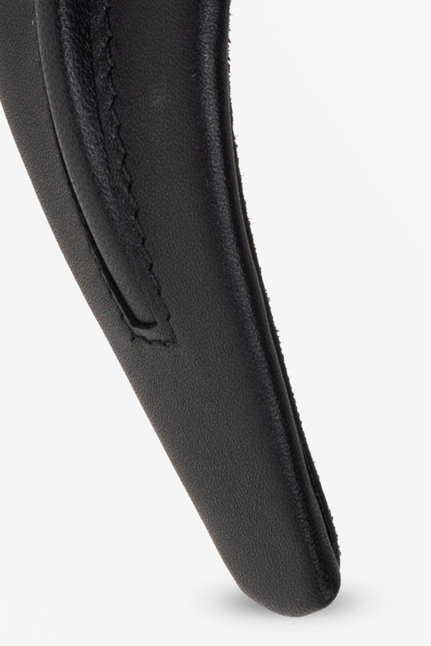 Wide, black headband from Fendi. Crafted from leather, this item is decorated with metal logo appliqués in gold-tone.
