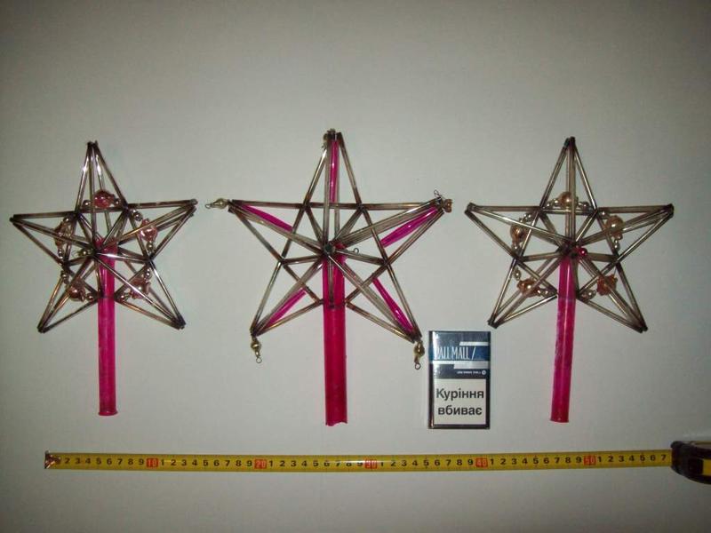 Верхівки на ялинку Зірка стеклярус, виробництво СРСР, рік випуску - імовірно кінець 50-х минулого століття. Ціна вказана за одну будь-яку. Продається в стані як є, без претензій і повернення. Всі питання щодо стану будь-ласка задавайте тільки до покупки. Стан на фото. Додаткові фото за бажанням. Намагаюся відповісти на всі Ваші запитання тільки до покупки. Відправлю після оплати на картку Приват банку. Передоплата у розмірі вартості лота, а доставку оплачує покупець під час отримання. Відправлю Новою поштою по Україні, вартість доставки за тарифами Нової Пошти. За взаємною домовленістю лише до покупки можливе відправлення УкрПоштою після передоплати у розмірі вартості лоту. Після покупки, Ви автоматично погоджуєтесь з наведеними вище умовами та положеннями. Після покупки, жодні претензії не приймаються.