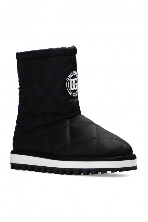 Black quilted snow boots from Dolce & Gabbana. Resting on a black and white rubber sole, this pair features a rubber logo patch in white and black.