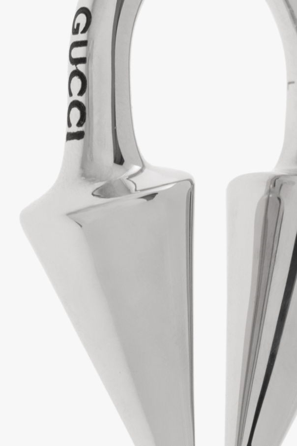 Silver-tone ring embellished with stud details and engraved logo from Gucci. Made of brass.