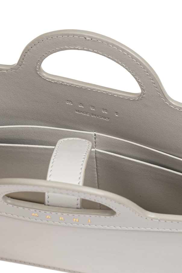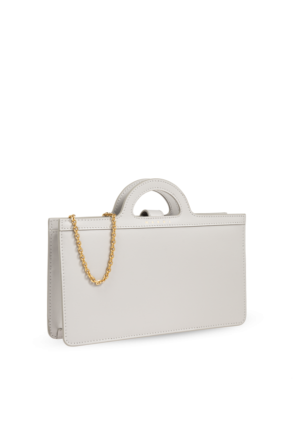 Introducing the epitome of sophistication and versatility - the Marni Chain Wallet. Crafted with meticulous attention to detail, this exquisite piece transitions seamlessly from a daytime accessory to an evening statement piece. Its rectangular silhouette, softened by gently rounded corners, exudes elegance in every line. The wallet's exterior, made from premium leather, showcases delicate stitching or ornamental perforations along the edges, enhancing its refined aesthetic. Adorned with a subtle designer logo at the front, the authenticity and craftsmanship of Marni are unmistakable. A short handle offers grace in hand-carry, while the long, golden, metal chain strap introduces an option for shoulder wear or crossbody style, elevating versatility. The pristine white hue of the leather is both classic and adaptable, making it a splendid addition to any ensemble. Its back features a small strap, possibly for closure or purely for a decorative touch, adding to its charm. The interior, also lined in luxurious leather, is thoughtfully designed with a main compartment, a zippered pocket, and eight card slots, all secured by a snap closure, ensuring both style and functionality. Why Purchase This Product? Exquisite Craftsmanship: Marni's signature quality and attention to detail shine through in every aspect. Versatile Design: Effortlessly switch between a chic handbag and a functional crossbody with its detachable golden chain. Luxurious Materials: Crafted from high-quality leather inside and out, offering durability and a soft touch. Functional Elegance: With its secure snap closure, interior compartments, and card slots, it marries elegance with practicality. Timeless Aesthetic: Its classic white color and subtle designer details make it a forever piece in your collection.
