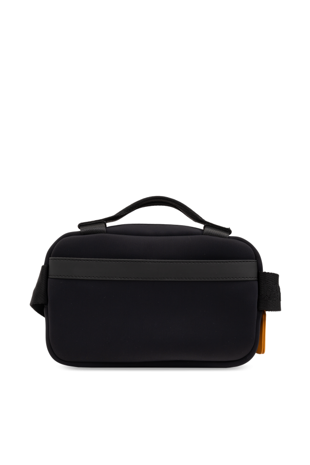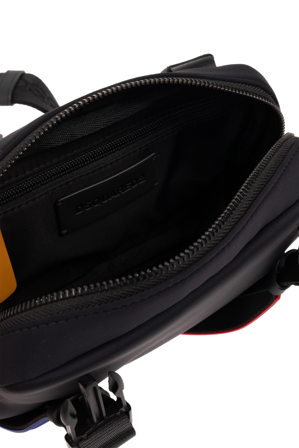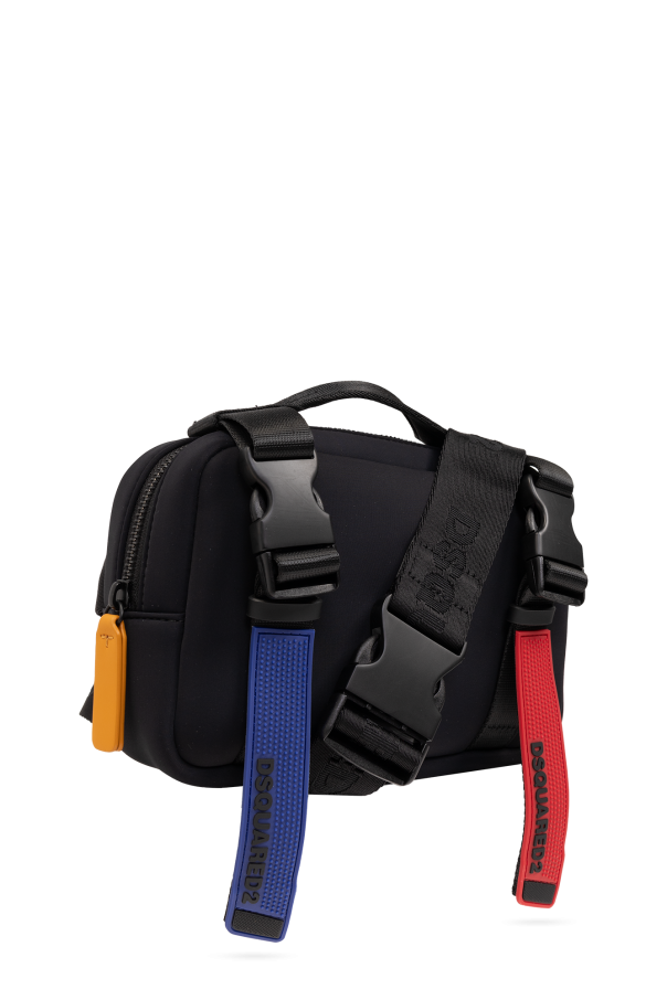 Introducing the epitome of sleek functionality and modern design - the Dsquared2 Logo Belt Bag. Crafted with a keen eye for detail, this accessory transcends mere utility to become a statement piece. Its dominant black hue, accented with vibrant stripes of blue and red, encapsulates contemporary style while ensuring versatility. The bag's rectangular form, with subtly rounded edges, is constructed from a durable, smooth synthetic material, promising longevity and resilience. The exterior boasts an adjustable strap adorned with an indiscernible logo, adding an air of mystery and exclusivity. A zip closure secures the main compartment, complemented by an additional front pocket, also featuring a zip closure for added security and convenience. An orange side strap offers both aesthetic appeal and practicality. Inside, the main compartment houses an internal pocket, further enhancing the bag's functionality. Meticulous construction is evident in the solid buckles and fixtures, signifying a commitment to quality. Why Purchase This Product? Exclusive Dsquared2 design embodies luxury and style. Durable construction ensures longevity and resilience. Versatile aesthetics with colorful accents suitable for various occasions. Functional details like adjustable straps and secure zippers meet practical needs.
