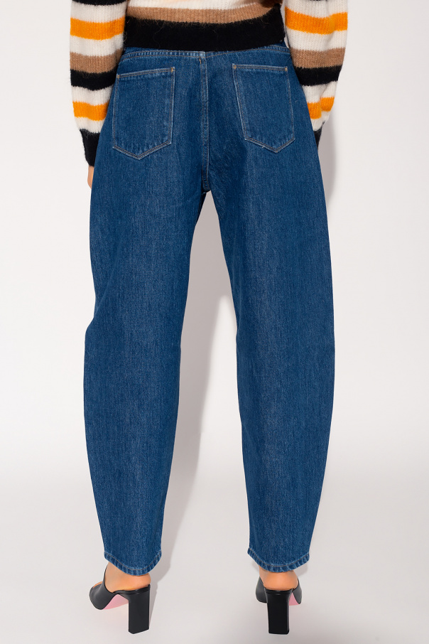 Dark blue ‘Chamomile’ jeans from Wandler. Made of organic cotton, this high-waisted pair features a button and zip closure, three front pockets, two back pockets and tapered legs.