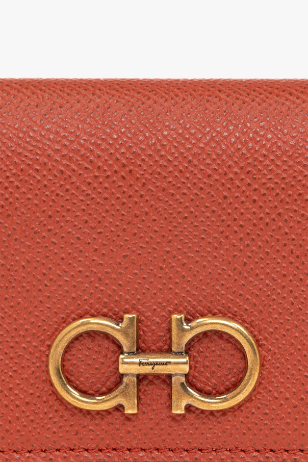 Brown card holder from FERRAGAMO. Made of calf leather, this item features snap fastening, the brand’s signature Gancini motif in silver-tone, card slot at the back and one internal compartment with one card slot.