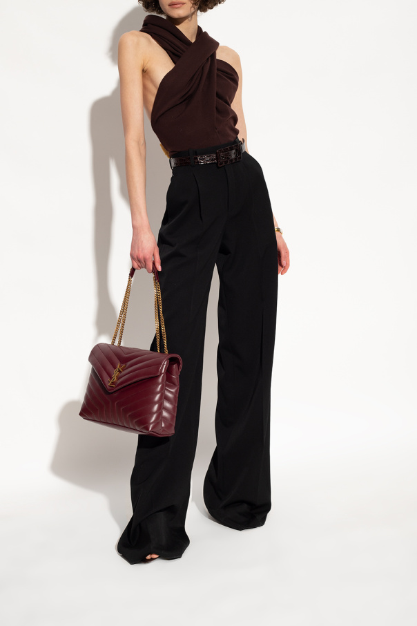 Dark brown ‘Dive’ mules from Saint Laurent. Made of satin fabric with a pointed toe silhouette, this model sits on a black leather sole and features a toe strap and an adjustable strap with a silver-tone buckle, bejewelled with glossy crystals.
