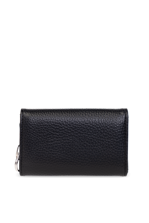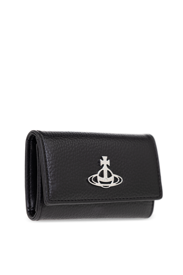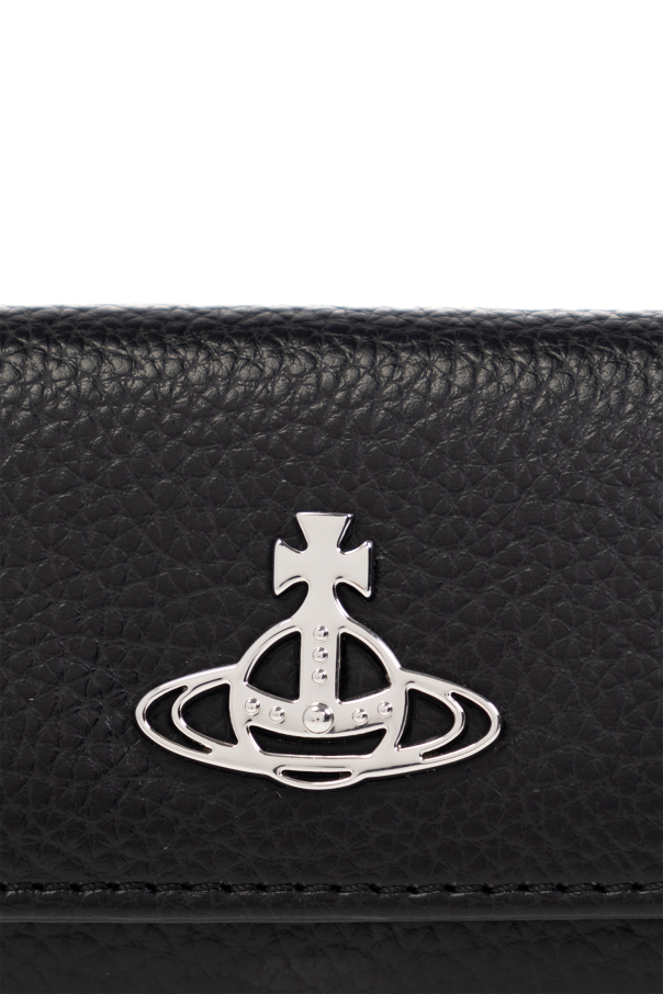 Black key holder from Vivienne Westwood. Made of vegan leather, this item features a snap closure, silver-tone logo detail as well as four hooks and three slip pockets inside.