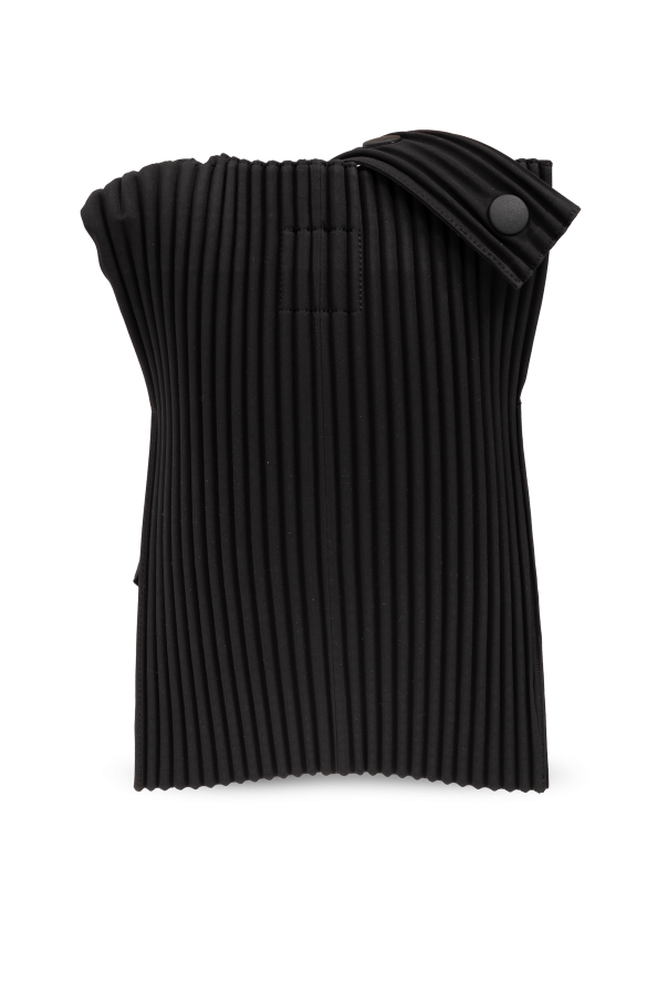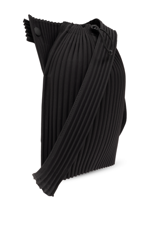 Introducing the ‘Pocket 1’ shoulder bag by Issey Miyake Homme Plissé, a testament to minimalist elegance and functional design. Crafted from a durable and potentially elastic material, this black shoulder bag exudes sophistication with its vertical, ribbed stitching that adds texture and depth. The bag's dominant black hue is complemented by a wide shoulder strap, ensuring comfortable wear throughout the day. The ‘Pocket 1’ is distinguished by its large, singular button closure located on the upper left corner, securing your belongings with an effortless touch. This spacious bag is designed to cater to the modern man's daily needs, offering ample room for various essentials. The incorporation of two slip pockets and a drawstring compartment further enhances its functionality, while the adjustable strap with snap fastening allows for a customized fit. Contrasting beautifully against light attire, as seen in usage by a model, this piece not only serves practicality but also stands out as a statement accessory. Its plissé design, a signature of Issey Miyake Homme Plissé, brings a unique texture that sets this shoulder bag apart from conventional designs. Why Purchase This Product? Elegant Design: The bag’s minimalist aesthetic, highlighted by its plissé texture, makes it a versatile addition to any wardrobe. Functional Utility: Designed with two slip pockets and a drawstring compartment, it ensures your essentials are organized and secure. Comfortable Wear: The wide, adjustable shoulder strap offers a comfortable and customized fit for all-day use. Signature Quality: As a creation of Issey Miyake Homme Plissé, it promises high-quality craftsmanship and innovative design.
