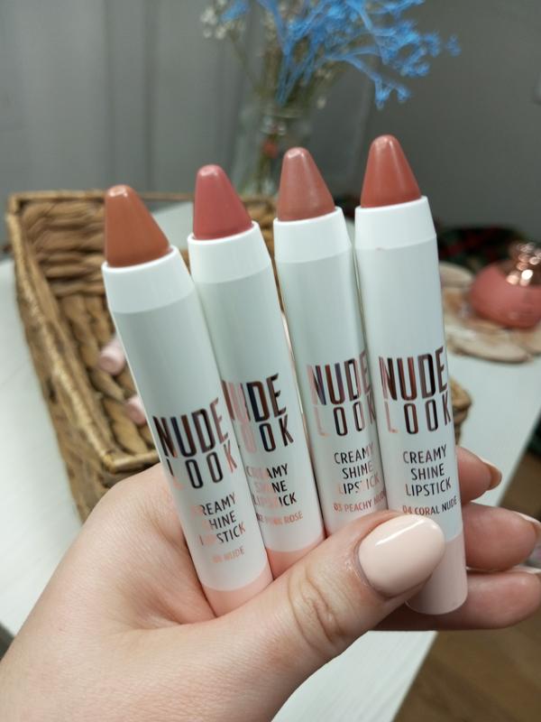 Помада имеет приятный ненавязчивый запах, представленная в натуральных цветах нюдовой палитры.