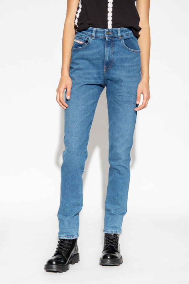 Dark blue ‘1994’ jeans from Diesel. Crafted from cotton, this pair features a zip and button closure, embossed monogram, logo patch at the back and five slip pockets.