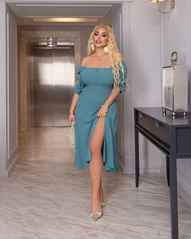• Спідниця напівкльош з спокусливим розрізом по нозі.