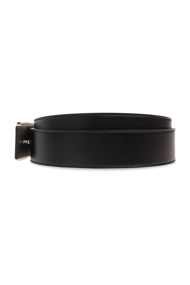 Reversible belt in black and green from Balmain. Made of leather, this item features a silver-tone buckle in the shape of a logo.