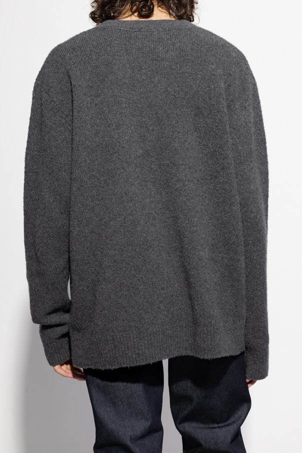 Dark grey sweater with a round neck and long sleeves from Dries Van Noten. Made of a wool and cashmere blend.