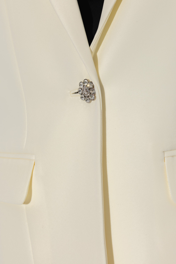 Cream ‘Elena’ vest from Custommade. Fastened with a crystal-bejewelled button, this style features a single back vent and two flapped front pockets.