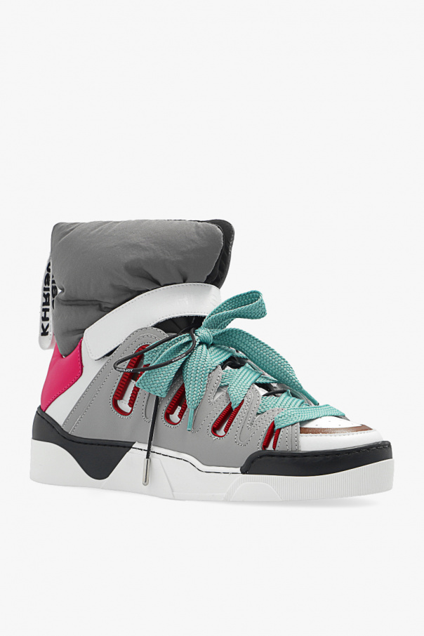 Multicoloured ankle boots from Khrisjoy. Crafted from faux leather and insulated technical material, this lace-up model sits on a white and black rubber sole and features a drawstring fastening, a logo-embossed velcro closure and a branded grosgrain pull tab at the back.